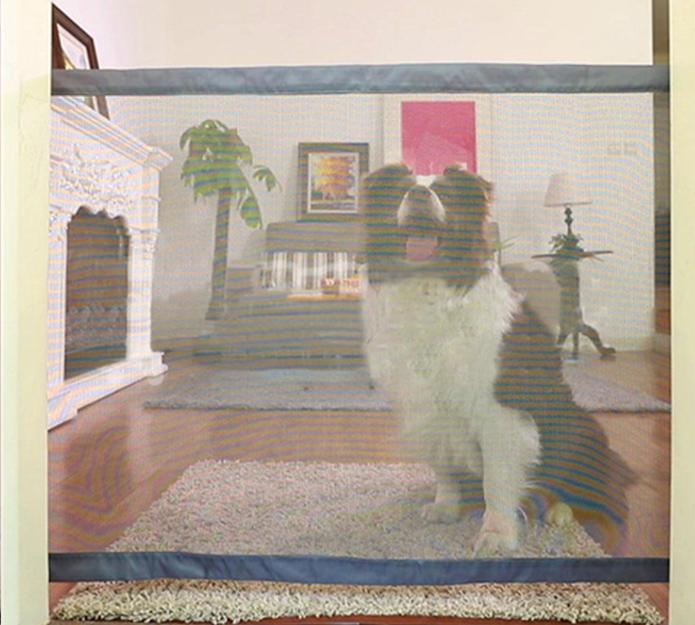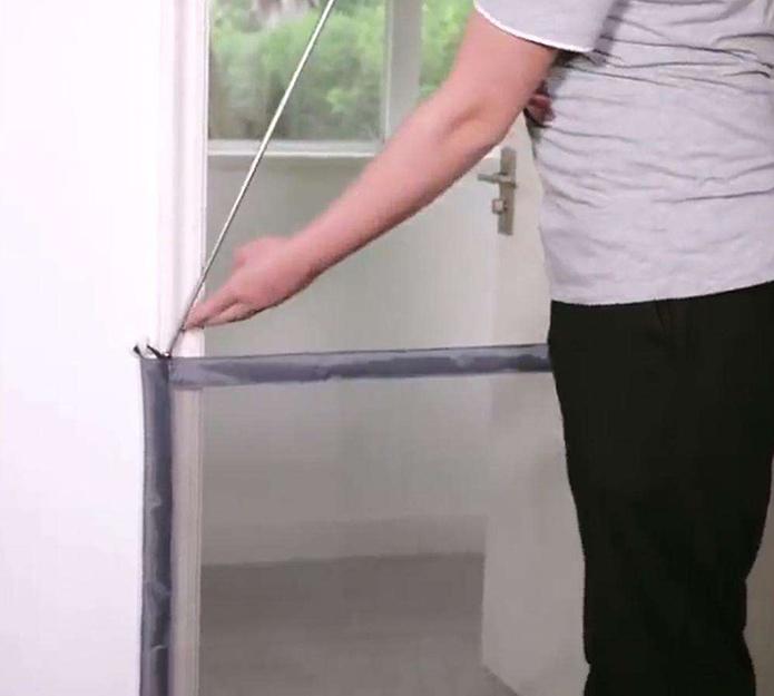 Tkano pregrado preprosto povlečete in s tem ustvarite popolno ali delno zaporo. Dolžino mreže zlahka prilagajate tako, da jo ob strani zvijete in jo nato obesite na priložene kljukice. Tako je primerna za vse širine prehodov do kar 182 cm.