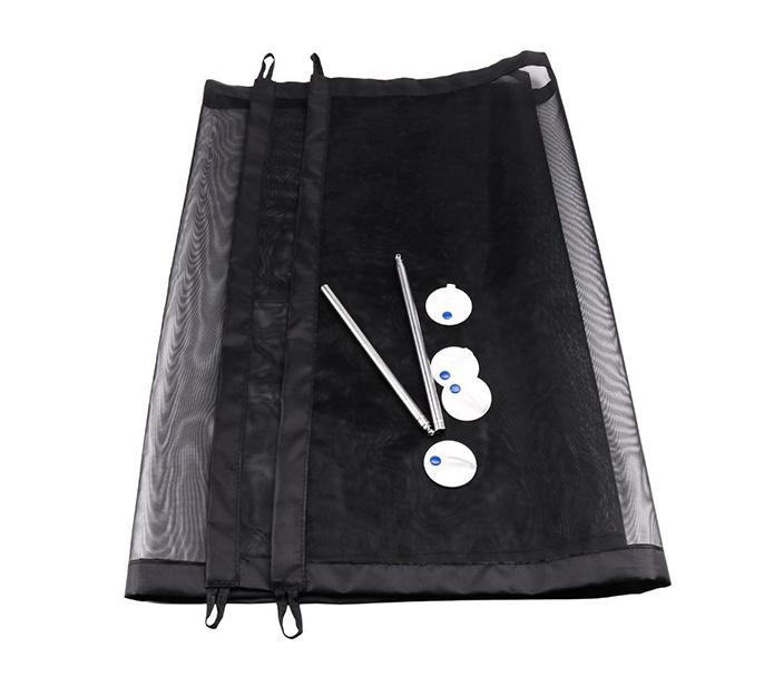 Mere: 74 x 182 cm; material: tkanina, umetni material; vsebina kompleta: 1x varnostna mreža, 2x raztegljivi drog, 4x samolepilna kljukica